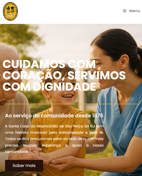 É com grande satisfação que a Santa Casa da Misericórdia de São Pedro do Sul anuncia o lançamento do seu novo website oficial.Este novo espaço digital foi pensado para estar mais próximo da comunidade, oferecendo uma navegação simples, moderna e acessível, onde poderá encontrar toda a informação sobre os nossos